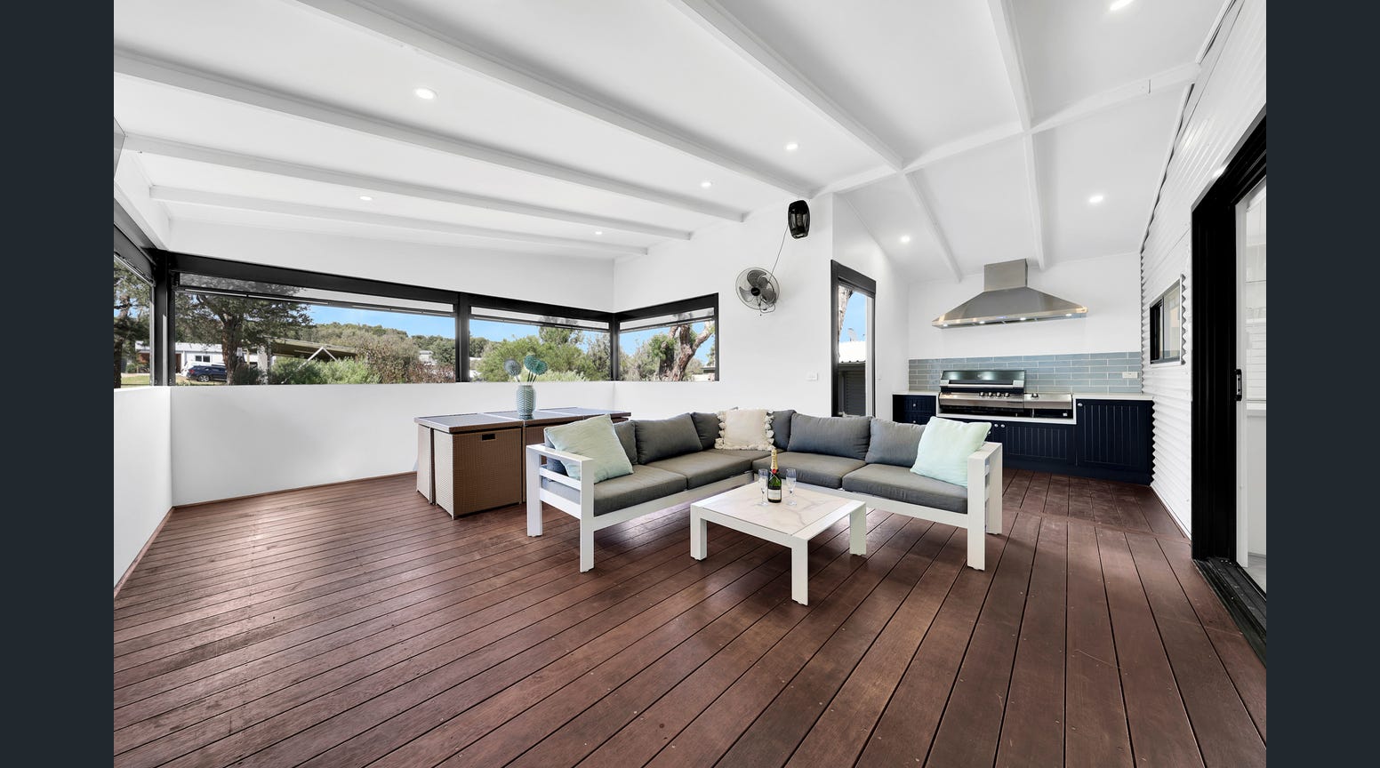 Open the stacker doors and let the fun spill outdoors to a large, fully enclosed entertainer’s deck. With merbau decking, a built-in BBQ and kitchenette, café blinds, and a generous-sized shed for all the bikes, beach gear and holiday extras, this is where long lunches, laughter and relaxed evenings come to life.